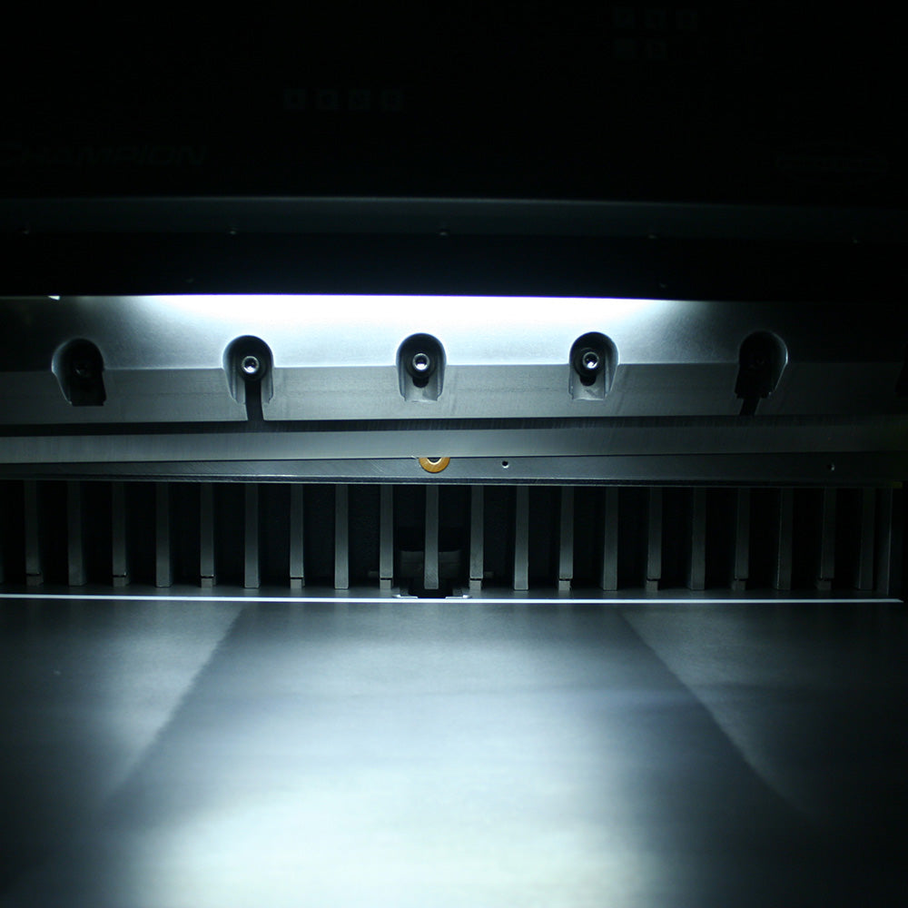The Champion 305 meets the toughest safety standards in the industry today. Light safety curtains, enclosed rear table, two-hand timed non-repeat cut buttons, and a knife safety latch contribute to our UL and CE certification.