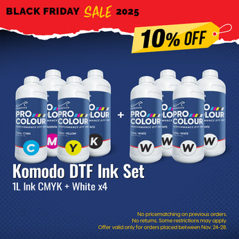 KOMDO DTF INK (1 LITRE) FULL SET (CMYK + Wx4) - BLACK FRIDAY SALE 10% OFF